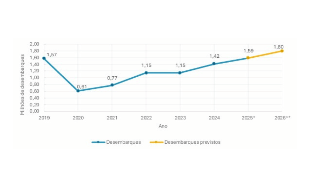 Projeção realizada pelo Observatório Nacional de Turismo Sustentável indica cerca de 1,8 milhão de chegadas pelo aeroporto e rodoviária do município.